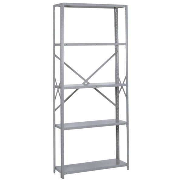 Instantly create more vertical storage space with Lyon’s 8000 Series open steel shelving starter unit. This shelving unit is ideal for storing items where high visibility is a concern. Our industrial open shelving allows you to see from either side. This 5 shelf metal shelving unit offers great storage space for light parts and aerosols as well as heavier items like tools or safety supplies. Our tall open shelving unit is ideal for use as either a warehouse or commercial metal shelving unit. We offer our Industrial Steel Shelving with a durable powder coat finish available in Dove Gray. The powder coat paint finish will help protect your steel shelving from everyday use.