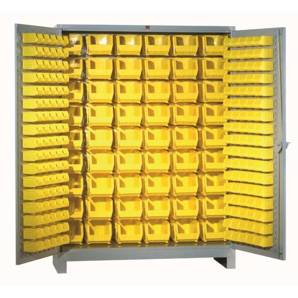 All-Welded 60″w x 21″d x 82″h Steel Industrial Bin Storage Cabinet with 224 Bins