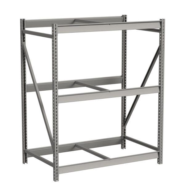 Lyon’s bulk storage rack starter with front-to-back supports is ideal for the hand-loading of intermediate weight bulky items. You can use this heavy-duty rack shelf in any number of storage applications. In addition to storing merchandise in shipping and receiving departments, stores can use these industrial metal racks in retail locations for display as well as for back stock. Hospitals can also use this heavy-duty steel storage rack to hold medical supplies and much more. We offer these steel Storage Racks with a durable powder coat finish available in Dove Gray. The powder coat paint finish will help protect your bulk rack shelving from everyday use.