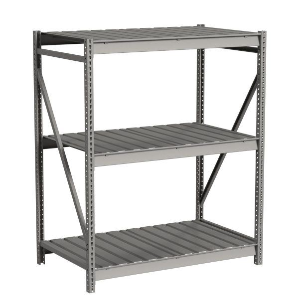 Lyon’s bulk storage rack starter with ribbed decking is ideal for the hand-loading of intermediate weight bulky items. You can use this heavy-duty rack shelf in any number of storage applications. In addition to storing merchandise in shipping and receiving departments, stores can use these industrial metal racks in retail locations for display as well as for back stock. Hospitals can also use this heavy-duty steel storage rack to hold medical supplies and much more. We offer these steel Storage Racks with a durable powder coat finish available in Dove Gray. The powder coat paint finish will help protect your bulk rack shelving from everyday use.