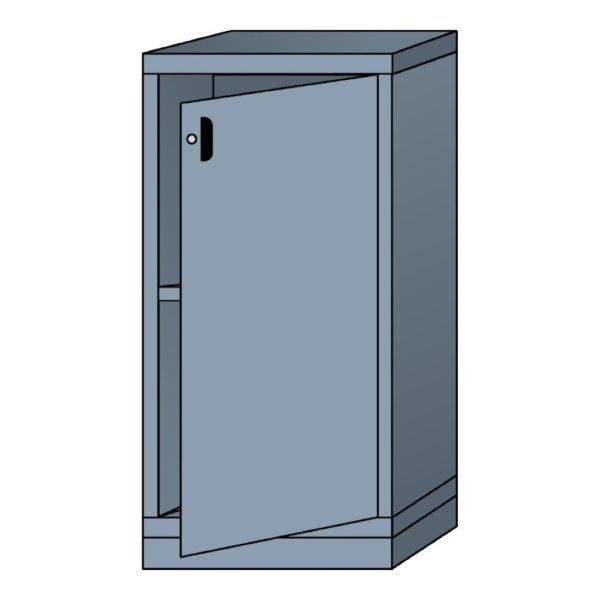 The counter height modular cabinet shelf unit with door provides additional storage space for items next to your existing Lyon modular drawer cabinets. This small closed shelf cabinet fits neatly next to your other desk height cabinets. A closed front cabinet allows you to easily secure items that do not fit as well into drawers. These small steel cabinets work great in auto shops or machine shops. You can also use them with a Lyon workbench to add more storage near your workstation. This storage unit with doors is perfect for storing either tools, drills, aerosols, or safety supplies.