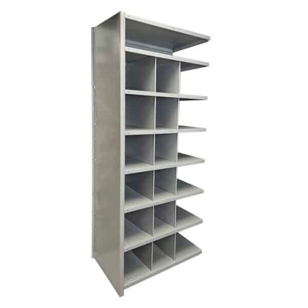 Keep your items organized with Lyon’s metal bin shelving add-on. This steel bin shelving offers an ideal solution for warehouse storage systems needing an assigned location for stored materials. This 3 foot shelving unit features a closed back and sides. You can use this steel shelving unit either against a wall or back-to-back for rows of shelving. Lyon’s 8000 series is ideal for use as either warehouse or commercial metal shelving. We offer our industrial steel shelving with a durable powder coat finish available in Dove Gray. The powder coat paint finish will help protect your steel shelving from everyday use.