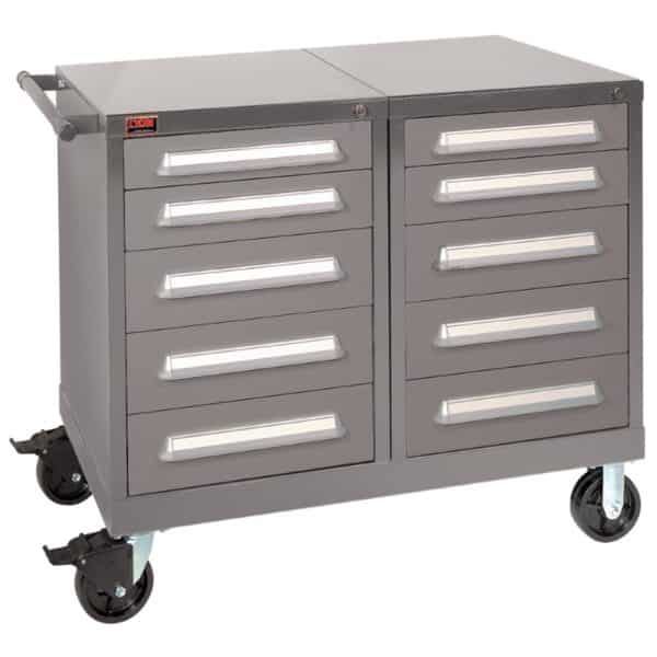 The mobile tool cabinet with drawers provides you with the highest density storage for small to medium sized items. This metal rolling cart with drawers is a great option for those in need of mobile tool storage. This metal drawer cabinet on wheels is ideal in either an auto repair shop or as a garage rolling tool cabinet. Reduce your storage footprint by as much as 50%. Having neat storage increases efficiency. Lyon industrial storage cabinets with drawers are the most reliable in the industry.