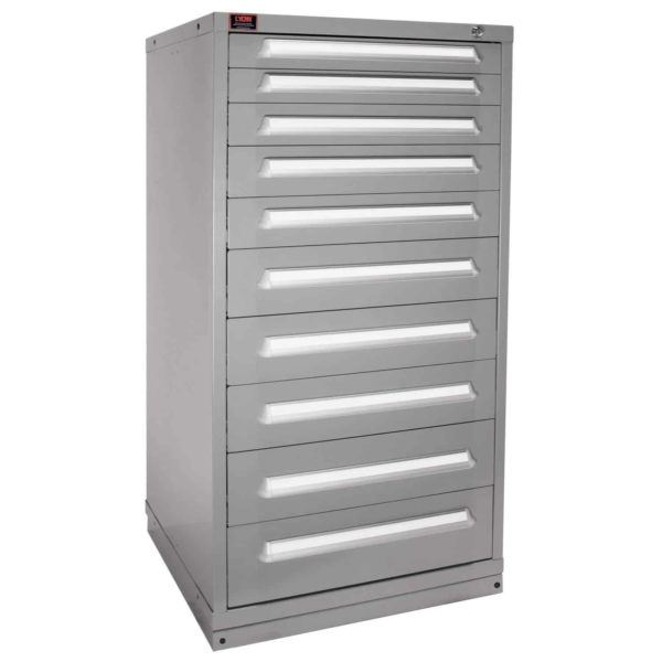 The M683030000CIL modular drawer cabinet offers you the highest density storage for small to medium sized items. You can even use these industrial modular cabinets as high density tool storage for an auto repair shop. This industrial drawer unit can reduce your storage footprint by as much as 50%. Lyon industrial storage cabinets with drawers are the most reliable in the industry. We stock this quick ship modular drawer cabinet with a powder coat finish available in Dove Gray, Dark Sea Blue, or Vulcan Black. This durable paint finish will help protect your cabinets from harsh use. Lyon proudly makes these modular storage cabinets in the USA.