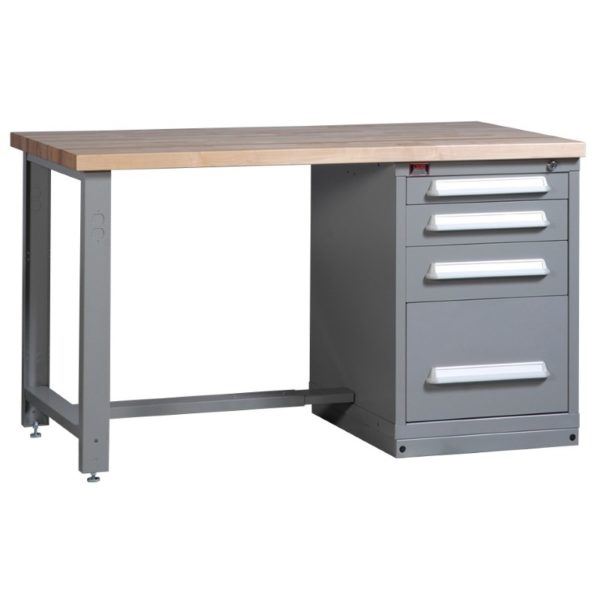 Hardwood Work SurfaceThe 251wbc01 industrial workbench with drawers includes a 60″w x 30″d hardwood work surface. This hardwood top is made of many sealed kiln-dried hardwoods. This solid-laminated surface also has 3/16-inch radius rounded edges and is ideal for precision work. The round edges will add comfort when leaning over the heavy-duty industrial workbench to perform tasks. The work surface of this heavy-duty workshop table with drawers offers a weight capacity of 5,000 lbs.