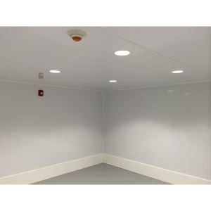 The interlocking nature of NUDO's BioProtect™ wall and ceiling panels offers a near seamless appearance. These panels feature .090" thick FRP with a .250" ACM core. Offering durability, moisture resistance and cleanability, these panels, along with coordinating kerb and joint sealant, are the perfect fit for any cleanroom application.