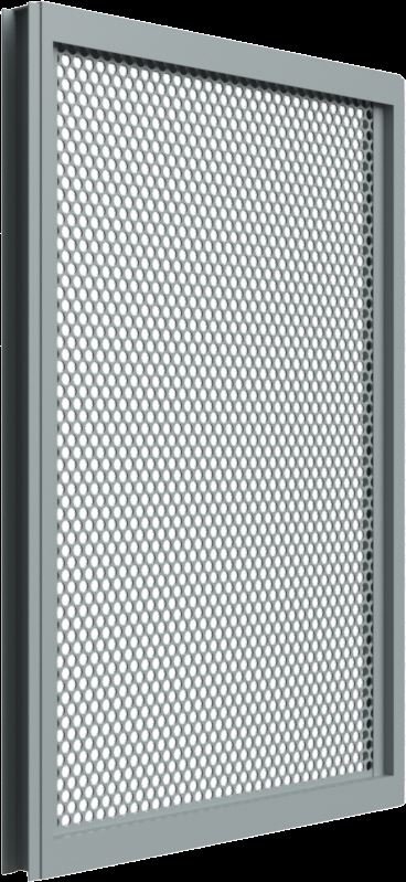 Wire Mesh: 2″x2″x1/4″ aluminum mesh (typ.) infill