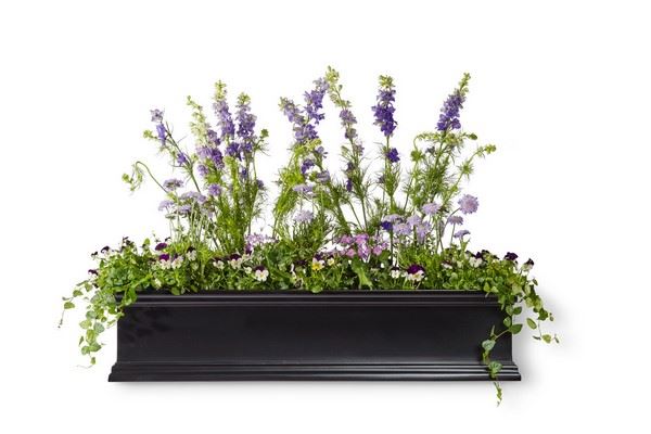 The bold black hue of this planter box gives it a stylish look, fitting for contemporary as well as more traditional homes. But it doesn't stop there. Its beauty doesn't come with a sacrifice in durability or strength. Made from fiberglass for excellent weather resistance even in harsh conditions, the Laguna is one of our most durable planters yet. The spacious interior allows plenty of room for colorful flowers, dramatic vines, or herbs to grow right outside your kitchen window. Need another reason to make a purchase? The Laguna also features drainage holes to prevent overwatering, keeping plants safer in heavy rains. Add the self-watering system, and a constant flow of water and nutrients keeps flowers vibrant and healthy, even if you aren't the greatest gardener. Each shipment includes the window box of your choice along with stainless steel wall brackets & built-in cleat mounting system.