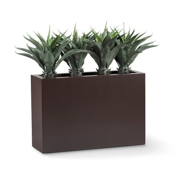 Design your commercial landscaping using low maintenance Outdoor Rated Agave Macroacanthas in Modern Planters. Each planter is made with great attention to detail out of fiberglass. Fiberglass is a superior material to construct planters out of as they are light weight, yet incredibly strong and resilient to weather, sun, and foot traffic. Our fiberglass planters are painted using automotive grade paint in 9 curated colors, with 2 finishes of semi-gloss or matte to choose from. The Agave Macroacantha's are especially well made with a great deal of detail, and the material is all UV resistant, so it can take the full sun without fading. These agaves are 24" in height, but when mounted will add approximately 16-18" to the overall height of your planter.