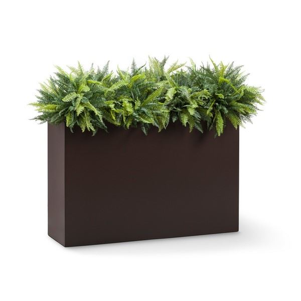 Design landscaping plans with our Outdoor Rated Ferns in Modern Planter. The ferns have various colors of green to instill realness, and are UV protected to withstand prolonged exposure to the sun without fading. They have been installed within our fiberglass planters which have several sizes and colors available to fit in your design scheme. Each fern measures 17" in height, but when planted is approximately 12" in height.