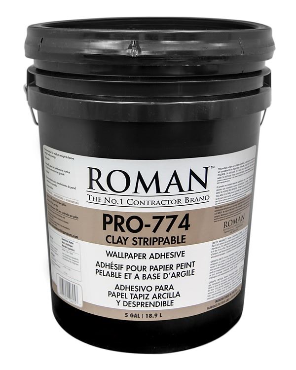 Roman’s PRO-774 Clay Strippable Adhesive is ideal for commercial, hospitality, and health care wallcovering installations. PRO-774 is a commercial grade wallcovering adhesive and is strippable with most fabric-backed vinyl.