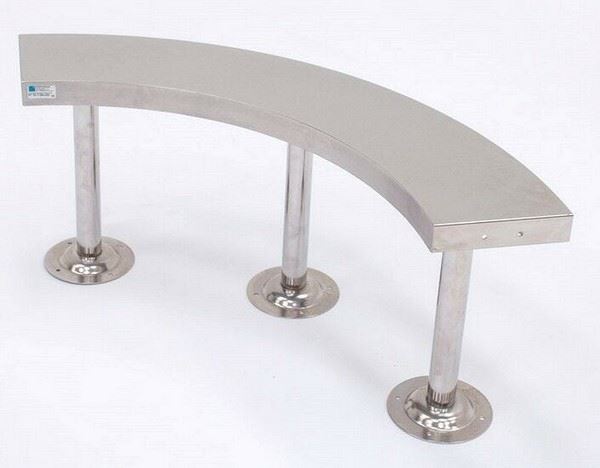 Gowning Bench;304 Stainless Steel,Solid Top,Curved,48Wx9Dx18H,Floor-Mounted,Modular,Cylindrical Base