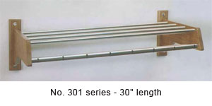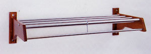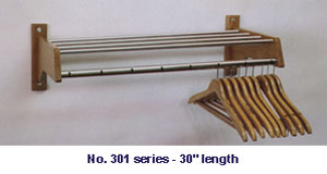 The systems which are designed to accommodate balltop hangers have a slotted hanger bar which makes it easier for guests to use the balltop hangers. With the slotted hanger bar system, hangers easily slide along the length of the hanger bar. Housekeeping can quickly add additional hangers at their guests request. Wood and chrome plated steel systems are available for standard and shallow depth closets. A chrome plated steel system that mounts to the underside of an existing shelf is also available.