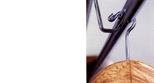 KEYWAY® closet systems that accommodate small hook hangers are available as wood and chrome plated steel systems or as chrome plated steel units that mount to the underside of an existing shelf. The patented hanger bar suspension system allows unobstructed movement of hangers along the length of the 5/8" diameter hanger bar. These systems provide the convenience of regular open hook hangers and the low operational costs of balltop hangers.