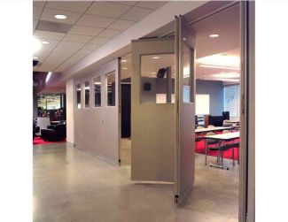 Acousti-Seal Models 932 / 942 / 912 / 932FS / Operable Walls – Paired Panels PRODUCT PRESENTATION Paired Panel Systems For straight-line openings that do not require multiple layouts or remote storage, paired panel systems are usually the answer. Panels are hinged together in groups of two, so paired panel systems provide quick and easy setup. And because one carrier is located in the center of each panel, no auxiliary storage track or support is required. They're ideally suited for applications that require exceptional durability, acoustic control and frequent use. Floor-supported paired panels are available for installations where the existing overhead structure cannot support the partition's weight. When not in use, paired panels are designed to be stored at either or both ends of an opening for added storage flexibility. Paired panels are frequently used to divide classrooms, conference or meeting rooms and office space. Acousti-Seal 932