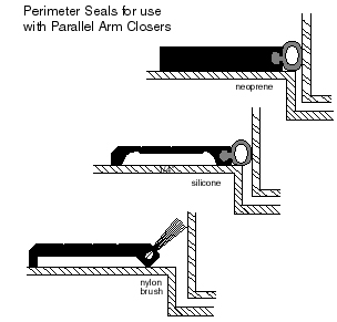Gasket materials are available in Neoprene, Silicone, Polyurethane, Nylon Brush, Pile, and Vinyl. Weatherstrip is available in Anodized Aluminum, Dark Bronze Anodized, Gold Anodized, Solid Brass or Stainless Steel. Gasketing with the BHMA Certified symbol meet ANSI/BHMA A156.22-1996. Gasketing and Edge Sealing Systems for fire doors, including positive pressure fire doors and smoke and draft control door assemblies is U.L. Classified and identified with the appropriate symbols to indicate these classifications.