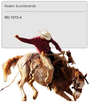 Electronic LED Rodeo Scoreboards Our line of LED rodeo scoreboards have standard captions for rider number and time (minutes and seconds). The LED scoreboard displays event leader, as well as current and previous rider information. End-users can choose from list of standard colors and trim tape and there is space available for sponsorship or advertiser signage. Fair-Play Scoreboards 1700 Delaware Ave Des Moines, IA 50317 Phone: (800) 247-0265 Fax: (515) 265-3364 Email: sales@fairplay.com Web: www.fair-play.com |