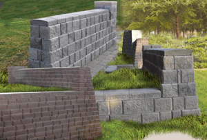 EverLoc's™ Fence/Parapet systems are great for many applications including sitting walls, courtyards, privacy fences, patios, etc. One popular application is a parapet atop a retaining wall. Parapets can be designed and installed with the retaining wall itself eliminating unsightly guardrails or handrails. The Fence/Parapet system accommodates multiple heights insuring your barrier provides the protection you need around parking lots and other areas. The same versatile patterns found in EverLoc™ retaining walls are available for the Fence/Parapet systems. A complete line of accessories allow EverLoc™ Fence/Parapet to adapt to your specific needs. Always consult a Civil Engineer before designing or installing parapets intended for protective barriers! For retaining walls requiring engineered drawings, parapets must be included in the initial retaining wall design to allow for proper load requirements. For your protection and to assure compliance with state and local codes, all walls to be built 4 feet or taller must be engineered by a qualified engineer. The cost of this service is very nominal and also gives you a very accurate estimate of the cost of your planned wall. Ask your dealer for details.
