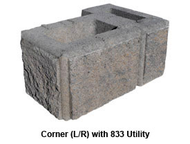 EverLoc™ Corners have an integral locking mechanism assuring ninety degree alignment and proper setback. Corners are equipped with radius edges giving them a finished appearance. These features are especially helpful when building steps! A utility piece is used beside each corner to maintain proper bond.