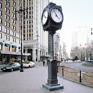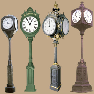 Size: 13' 6"H, (4) 24" dials. Backlit. Arabic or Roman numerals. Cast