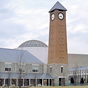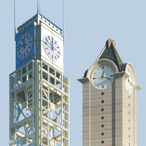 Size: 10' aluminum detailed clock cases mounted on steel structure,