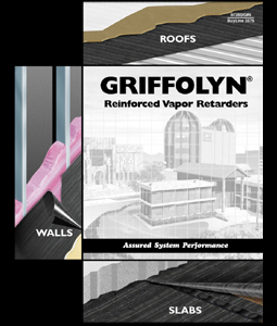 The easy to install Griffolyn® System can be used under concrete slabs, in roof assemblies and in wall applications, to control moisture infiltration in the building envelope. It is primarily used for critical vapor retarder applications in schools, office buildings, medical facilities, museums, hotels, etc. COMPONENTS The main component of The Griffolyn® System consists of a number of grades of lightweight polyethylene vapor retarders, which are reinforced with a heavy-duty cord grid for high strength and durability to meet the requirements of a variety of applications. The strength of the total system approach is most evident in the installation process. The most effective way to minimize moisture transmission through leaking field seams is to eliminate the seams altogether. Griffolyn vapor retarders can be manufactured in large pieces to minimize field seams. In addition to the reinforced membrane, the Griffolyn® System also includes the following components: