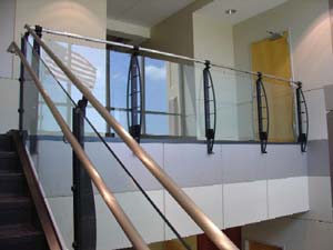 Arc with Glass The Livers Bronze Co. Arc Railing System with glass is a superb choice for your next project. Combining the visually appealing post combinations with the creative options available in the glass industry make selecting this handrailing system your easiest decision. The railing utilizes 1/2" tempered or laminated glass panels postioned between and attached directly to the Arc Railing post. This pre-engineered system can be incorporated into any design layout. Radius railings utilize bent glass panels. Flexible designs, multiple color options, top railing material/finish choices, optional grip railings and compatible fittings for adjacent wall mounted railings make Arc Railing by Livers Bronze Co. the imaginative choice for your next project. Arc Post Options: