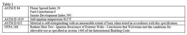 STUDfinder™: The patented STUDfinder Installation System combines precisely engineered nail slot locations with graphics. Nail slots are positioned 16" on center to allow for alignment with studs. STUDfinder graphics centered at each slot provide a quick and easy guide to help locate studs. Accessories: Wolverine manufactures a wide range of siding accessories that are compatible with Encore siding styles and colors. Accessory products include installation components, soffit, window and door trim, corner lineals, corner systems and decorative moldings. Composition: Encore siding products are produced using CertaVin™ custom-formulated PVC resin. This resin is produced exclusively by Wolverine, allowing Wolverine to maintain the high quality of its siding products. Wolverines Encore siding is in compliance with the ASTM Specification for Rigid Polyvinyl Chloride (PVC) siding D 3679. Technical Data: Encore siding meets the weathering standard in ASTM D 3679 using ASTM D 1435 procedure. As shown in Table 1, Encore siding products are in compliance with ASTM Fire and Smoke procedures and meet or exceed International Building Code requirements.