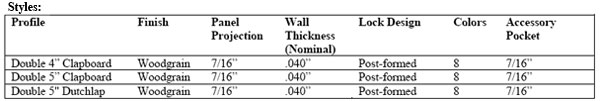 Colors: Newtown siding profiles are available in eight colors. All colors are Spectrophotometer controlled and utilize exclusive PermaColor™ color science.