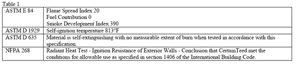 Lock: Designed for ease of installation, Newtown siding panels feature a post-formed lock popular with installers for its locking assurance and trouble-free handling. Accessories: CertainTeed manufactures a wide range of siding accessories which are compatible with Newtown siding styles and colors, in particular a corner post and J-channel both with 7/16 pocket. Other accessory products include installation components, soffit, window and door trim, corner lineals, corner systems and decorative moldings. Composition: Newtown siding products are produced using CertaVin™ custom-formulated PVC resin. This resin is produced exclusively by CertainTeed, allowing CertainTeed to maintain the high quality of its siding products. CertainTeeds Newtown siding is in compliance with the ASTM Specification for Rigid Polyvinyl Chloride (PVC) siding D 3679. Technical Data: Newtown siding meets the weathering standard in ASTM D 3679 using ASTM D 1435 procedure. As shown in Table 1, Newtown siding is in compliance with ASTM Fire and Smoke procedures and meets or exceeds International Building Code requirements.