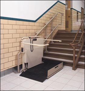 The Carrier-Lift® Inclined Platform Lift is a simple, cost-effective and dependable transportation system for persons with disabilities. The lift glides up and down stairs, across landings and around corners to make every floor of your building accessible. The lift's broad platform easily accommodates someone in a wheelchair or a person sitting on the fold-down seat. Operating controls are conveniently placed and easily operated. The Carrier-Lift rail is installed along the inside wall of your stairway. To insure a precise and "tight" fit, each rail is custom manufactured to the exact contours of your stairway – whether straight or curved. Models are available with either "full-time" battery operation with our unique battery charging system or AC operation to power the reliable rack and pinion drive. All Carrier-Lifts comply with the ANSI A17.1 guidelines, Parts XX and XXI and, when properly equipped, meet the ADAAG standards. When stairs are a barrier in your building, there is no better solution than the Carrier-Lift® Inclined Platform Lift from ThyssenKrupp Access. The Company Mission Statement History By 1991, we had developed so many products - ranging from vertical and inclined wheelchair lifts to home elevators - that the American Stair-Glide name seemed too confining. So we changed our name to ThyssenKrupp Access to reflect our goal to open up any area of virtually any building to the elderly and disabled. We proved access to a new freedom of movement. In 1999, ThyssenKrupp Access was acquired by the nation's largest elevator company, ThyssenKrupp Elevator, which even better positioned us to bring you quality products and make us an industry leader. Access Industries 4001 East 138th Street Grandview, MO 64030-2837 Tel: (816) 763-3100 Toll-Free: (800) 829-9760 Fax: (816) 763-4467 Web sites: http://www.tkaccess.com http://www.thelev.com Email: archassist@tkaccess.com |