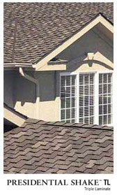 Presidential TL™Presidential TL, with its sculpted rustic edges, is constructed using three laminated layers of the industry's strongest, most durable materials, making it one of the thickest, toughest and best looking shingles on the market. The beauty of a wood shake with less cost and better performance.