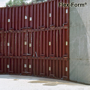 A specially-designed steel-faced forming system eliminates surface chording on curved walls and round tanks.