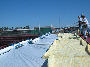 Purlin Glide FP® Insulation and Leading Edge Fall Prevention System The Purlin Glide FP® Insulation System is a patented system that offers builders and erectors a new, easier and safer method by which to insulate metal buildings. The system works on purlins and bar joists alike. The wide sheets of facing help create a continuous vapor retarder by significantly reducing the number of seams in the insulation. When properly used, the Leading Edge Fall Prevention that the system offers helps to create a safer work environment on the job site with no additional labor or time. Purlin Glide FP® also assists contractors in meeting OSHA Fall Protection standards. Purlin Glide FP® also makes walls look great since there a few seams and