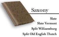 Saxony These beautiful designs are representative of the roof styles found in England and northern Europe and are available in a variety of surface treatments. All are designed to emulate natural materials and to complement virtually any architectural style. Slate Slate Vermont Split Williamsburg Split Old English Thatch
