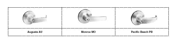 Levers available to accept small format interchangeable cores; large format interchangeable cores from Corbin Russwin, Medeco®, Sargent® and Schlage®; and fixed core cylinders from Schlage®.