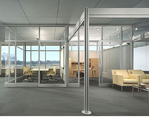 are designed around steel rectilinear components that are factory painted. 2. As an alternative, Privacy Wall Glass Selections includes factory glazed panels as well as an elegant butt glazed solution and a unique corner unit, all enclosed in an anodized aluminum frame that perfectly compliments Pathways Post and Beam. Privacy Wall GS wall panels install and change just as simply as the essential Privacy Wall components. Butt glazed panels are glazed on site. Both wall products provide the performance you need, give the look you want, all with the flexibility of moveable walls. Glass Selections uses the same connection logic as other Privacy Wall glass and solid components See Privacy Wall Glass Selections for more information. Performance standard Solid steel construction provides long-term durability and consistent noise control properties with an acoustical rating of 43 STC, exceeding conventional drywall. Environmental sustainability Privacy Wall contains 30% recycled material content, low emitting materials (no PVCs or VOCs) and generates no on-site off-gassing. It creates significantly less construction waste compared to traditional construction. And when it’s time to reconfigure, it’s 100% reusable. At the end of its long service life, the system is 90% recyclable. All reasons Privacy Wall will contribute to LEED® certification credits. Environmental ImpactPrivacy Wall is manufactured in a facility that is ISO 14001 registered (the