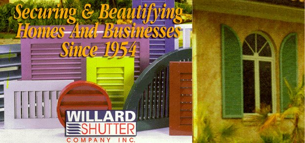 Family owned and operated since 1954, Willard Shutter Company has been a trusted leader in the shutter, awning and screen industry. With an outstanding reputation for high quality workmanship and engineering excellence, Willard continues to proudly manufacture expertly designed products that provide ease of operation, minimal maintenance and maximum durability.